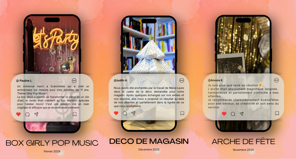 Mariage, baptême, anniversaire, gender reveal party, baby shower, fête de famille, fête d’entreprise.