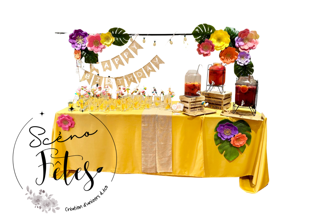 - Table décorée selon le thème choisi.